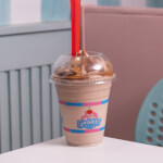 Coffee and rich fudge blended with creamy vanilla ice cream with cookie crumbs and hot chocolate