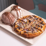 Enjoy our tasty dairy waffles crispy outside, fluffy inside topped with your favorite goodies and drizzled with rich chocolate for the perfect treat